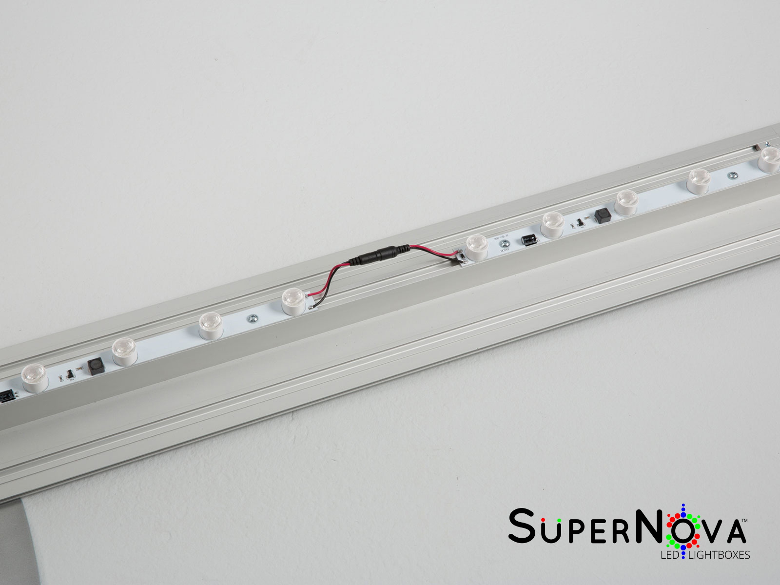 SEGUE SuperNova Wall Frames take the concept of high-impact, large format graphics to the next level. SEGUE Wall Frames maximize your graphic presentation while minimizing the visual appearance of aluminum by using silicone edge fabric graphics (SEG). With SEG, your graphics are perfect every time – there's no guesswork since the silicone fits into the pre-existing aluminum channel. The LED light modules are worry-free and long-lasting.