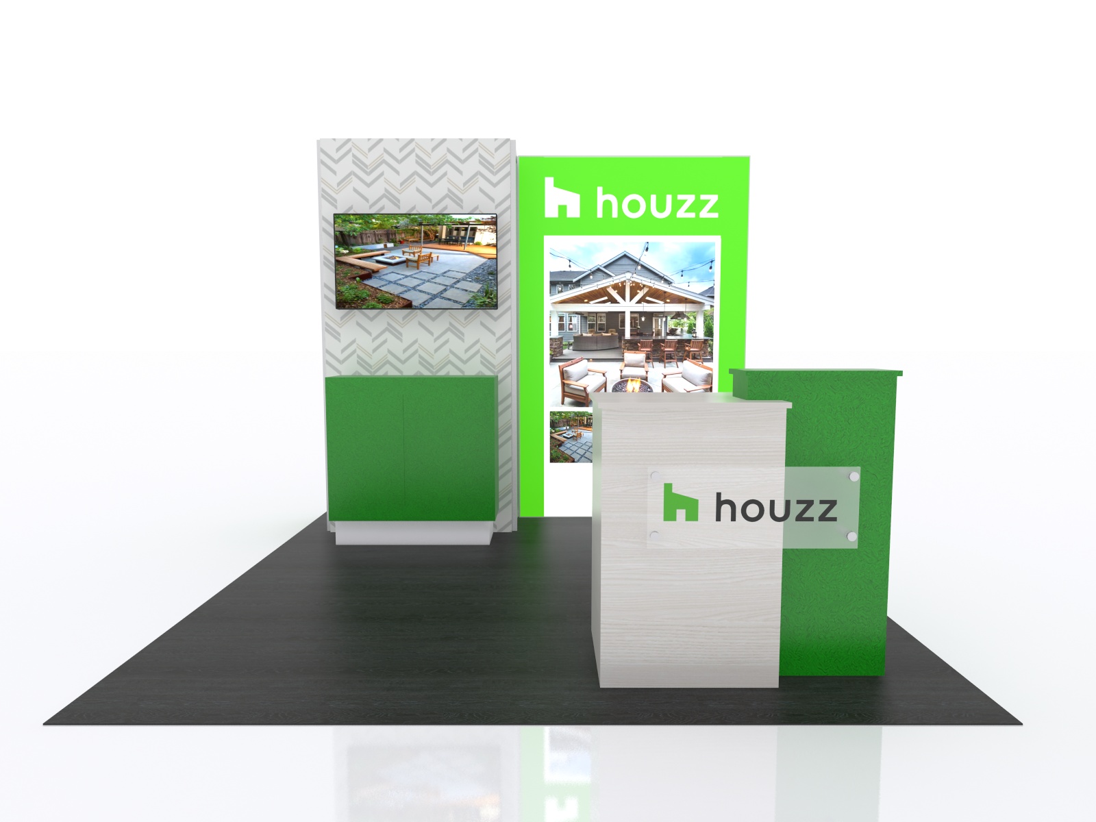 The ecoSmart Island Exhibits are design-driven, reconfigurable, and high-impact. Many islands can easily be reconfigured into 10 x 10 or 10 x 20 displays for smaller shows. We use the most sustainable materials on the market, and ecoSmart d" isplays prove that you don't need to look green to be green, and you don't need to spend more either. You'll always get the best of both with an ecoSmart.