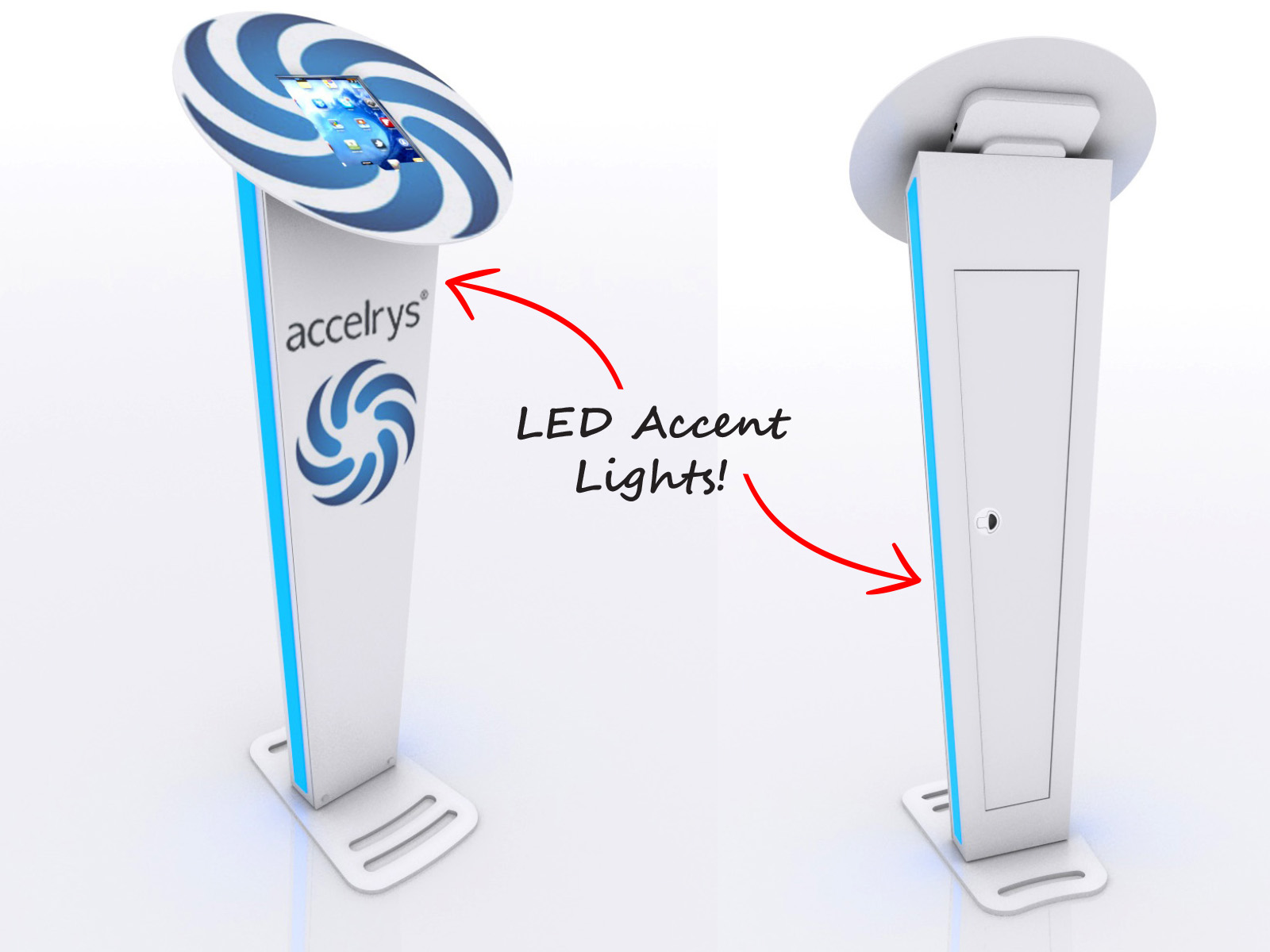 The Port Land iPad™ Kiosks are anything but dull. They are innovative, lightweight, and affordable. The locking clamshell frame rotates with the unique Swivel Stop™ feature, allowing you to seamlessly reposition your iPad to Portrait or Landscape mode. The kiosks are made from durable engineered aluminum and/or wood and assembly in minutes. There are multiple single iPad kiosks. The MOD-1334 is designed for two iPads and the MOD-1338 for four iPads. All have integrated cord management.