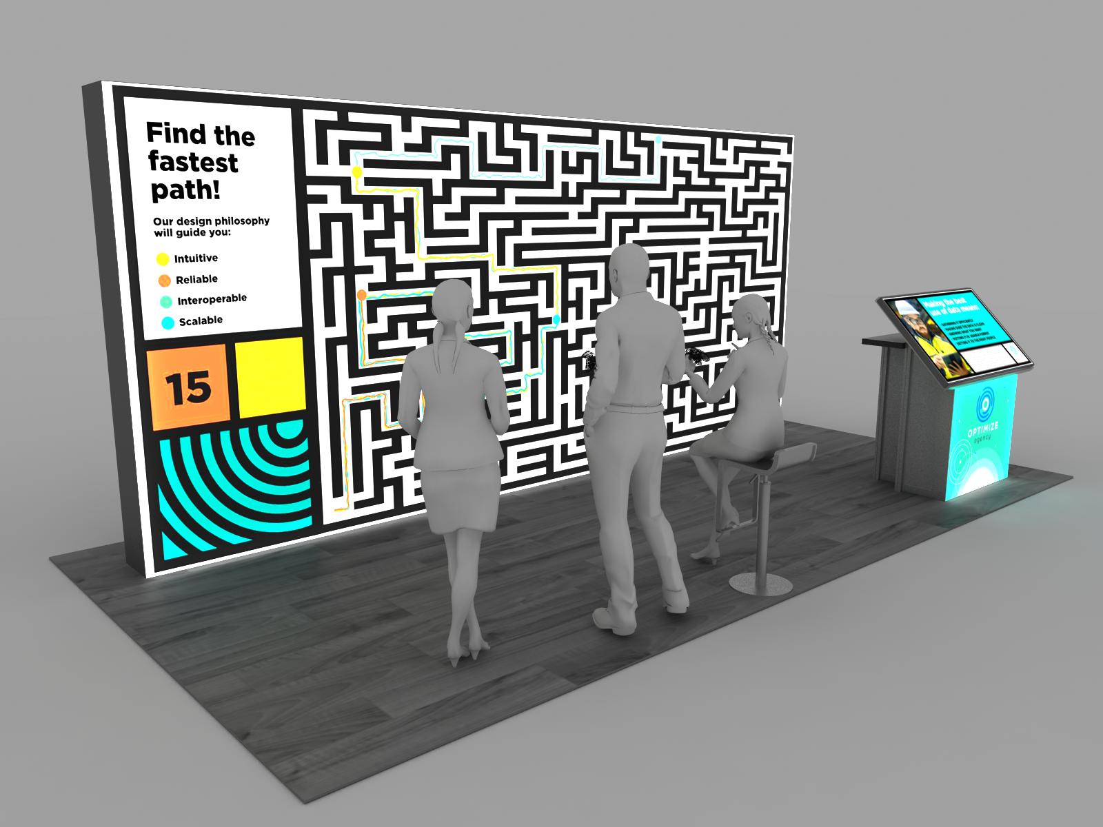 The MAZE! Game utilizing the LED back wall will definitely have the attention of your audience. Using familiar X-Box wireless controllers up to four players race through one of three default mazes. Along their way, bonus points can be consumed and a fast forward replay animation of each player's path when the game ends gives this experience a unique vibe.
