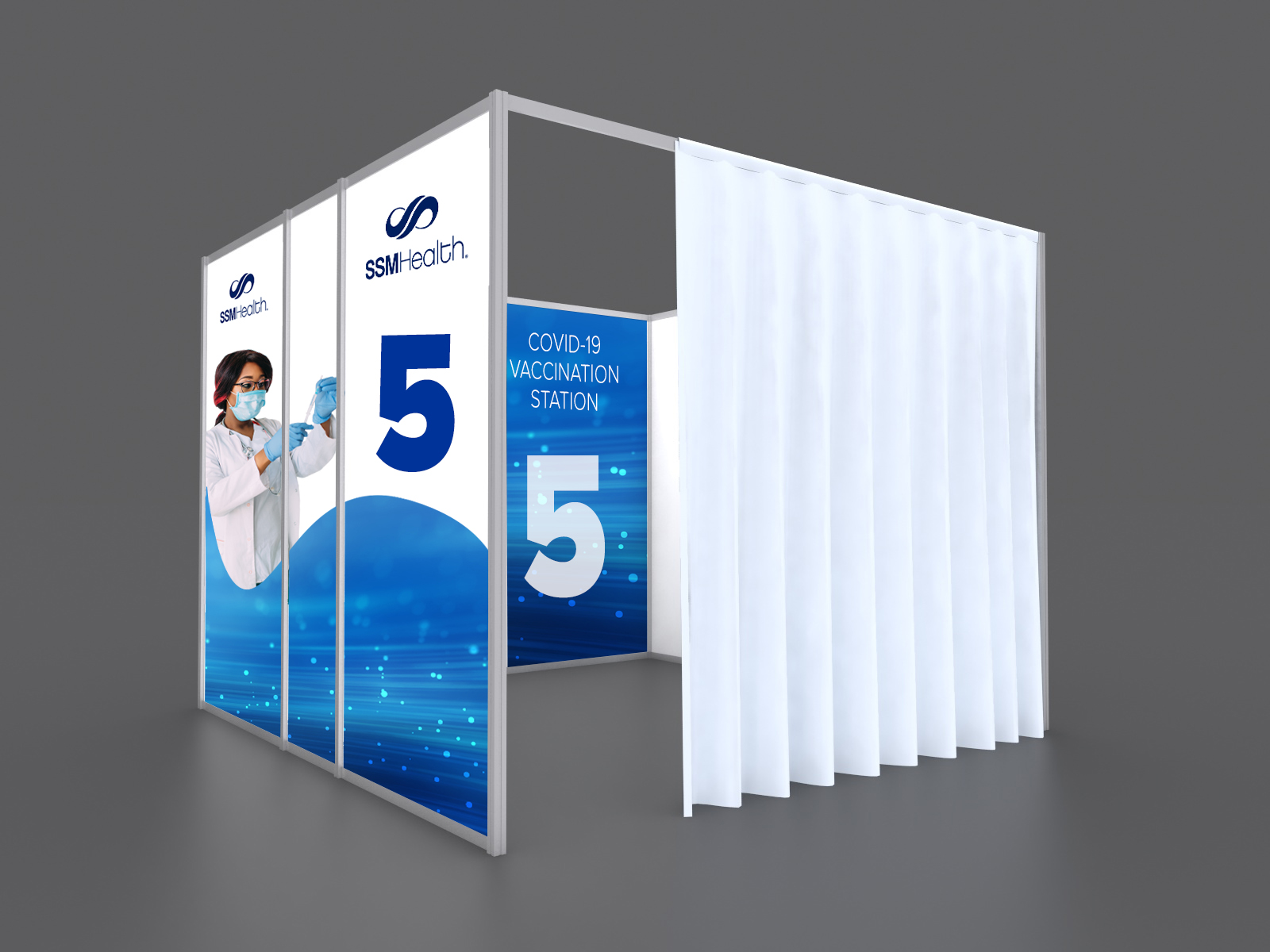 Modular Examination Rooms and Registration Stations are ideal as temporary structures, such as offsite facilities, overflow demands, or whenever construction requires short-term offices. The engineered aluminum frames are lightweight and satin anodized, making them incredibly durable and easy to clean. The frames assembly quickly, either with attached clips (Gravitee frames) or with a simple hex key (MODUL structures). The modular design allows them to expand or reconfigure, typically without disassembly of the existing structures.