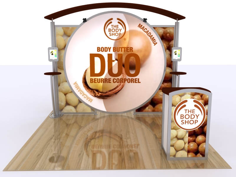 When choosing the right counter or pedestal for your display, consider how you will use it on the show floor. Do you need locking storage? Will the counter or pedestal hold a lead retrieval machine, laptop, or other electrical device? If so, you will need wire management. That may be as simple as ordering a grommet for the counter. If you are planning to use a tablet computer, consider the tablet insert option for the counter top. This option is practical, attractive, and secure for many tablets, such as an iPad.