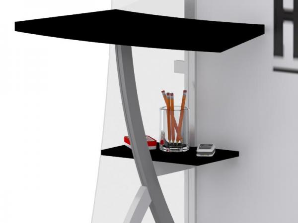 You can never have too many shelves and too much storage in a trade show booth. The MOD-1402 Hostess Shelf is the perfect compliment to the standard Sacagawea workstation shelf. It fits below the workstation shelf and is an ideal spot to hold pens, promotional giveaways, or your phone. Add one to each side.