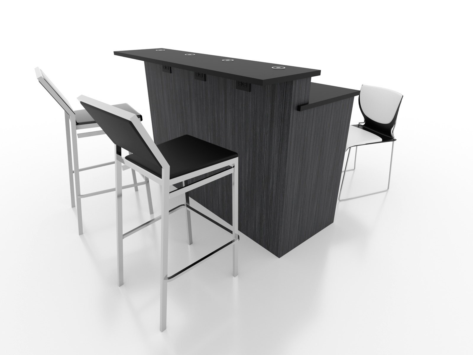 The InCharg Charging Solutions, tables, towers, counters, etc., are primarily modular, meaning they assemble in 3-5 components. For example, the MOD-1432 Bistro Table has three modular components: the countertop, post, and base.