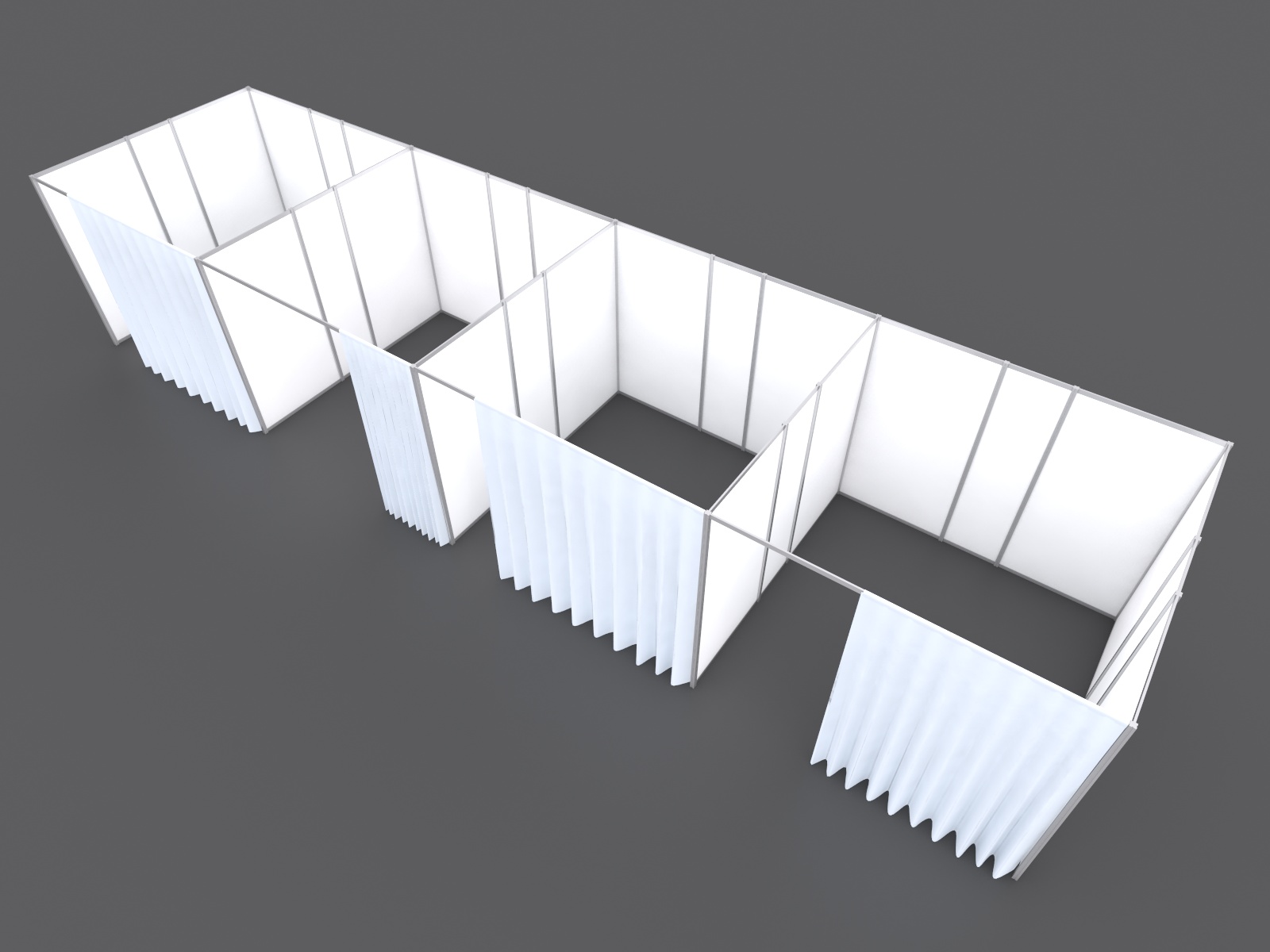Modular Examination Rooms and Registration Stations are ideal as temporary structures, such as offsite facilities, overflow demands, or whenever construction requires short-term offices. The engineered aluminum frames are lightweight and satin anodized, making them incredibly durable and easy to clean. The frames assembly quickly, either with attached clips (Gravitee frames) or with a simple hex key (MODUL structures). The modular design allows them to expand or reconfigure, typically without disassembly of the existing structures.