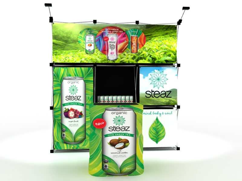 The Quadro FGS System has "floating graphics" vs. the full-height graphic panels on the Quadro S Pop Up. Floating Graphics are individual direct print graphics that attach to the frame with rubber rings. Customers who prefer the floating graphics often change their graphics more often than exhibitors with a standard pop up.