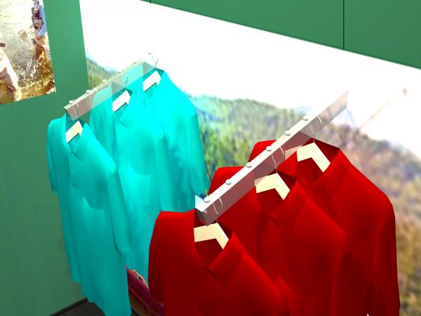 The fabric or graphic panels hang on pins that adhere to detachable steel channel bars with a magnet-to-metal connection. The panels are rollable to fit in the roto-molded case with wheels. The number of panels depends on the size of the frame.