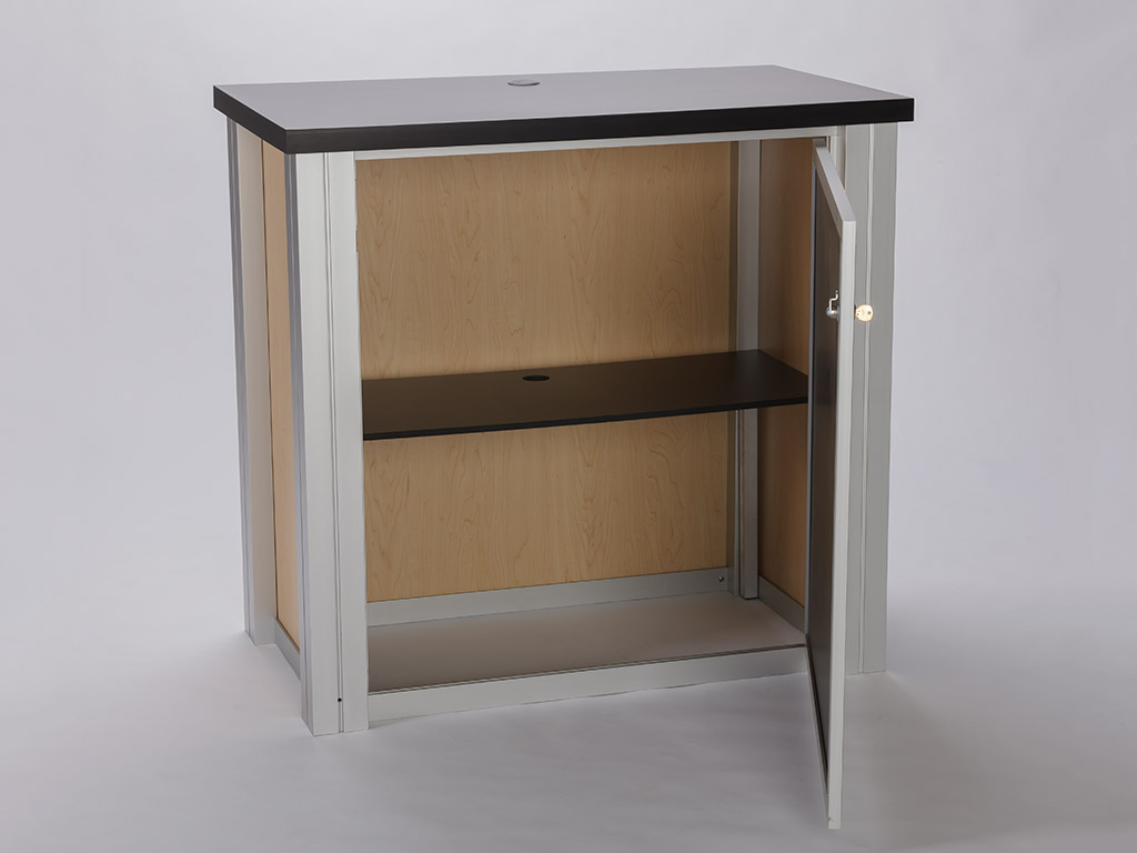 Most counters and workstations offer bold graphic opportunities with attachable or removable infill panels. And they all come equipped with locking doors for secure storage. Need more than one. We have a large inventory of the most popular counters and pedestals.