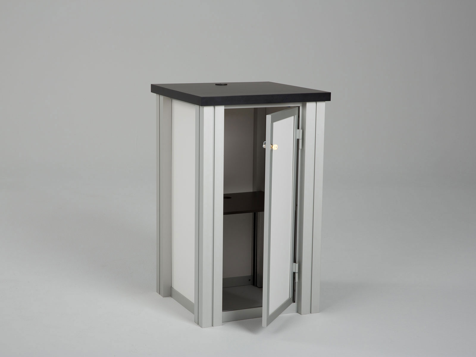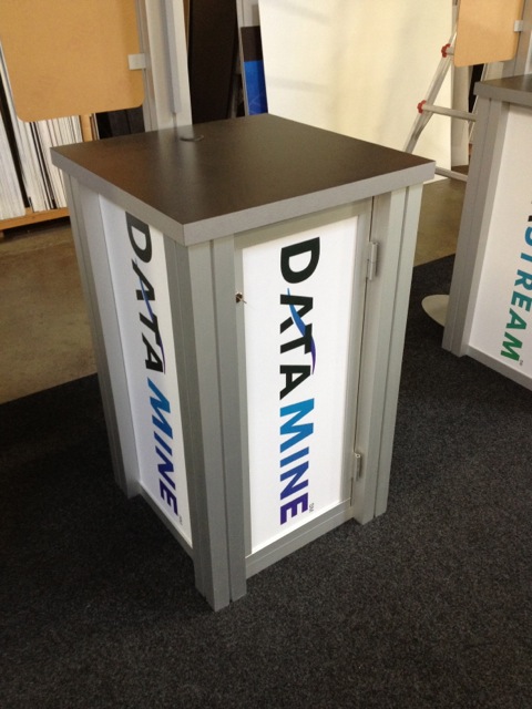 Most counters and workstations offer bold graphic opportunities with attachable or removable infill panels. And they all come equipped with locking doors for secure storage. Need more than one. We have a large inventory of the most popular counters and pedestals.