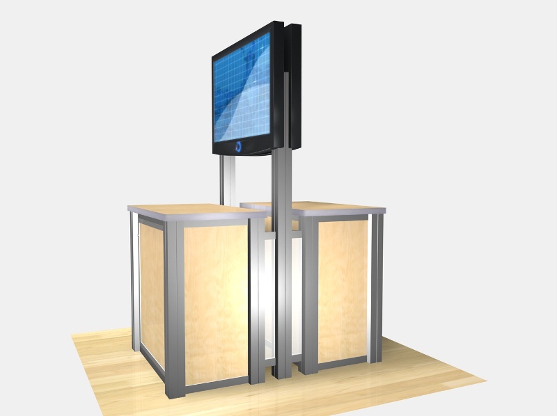 We offer a HUGE selection of contemporary rental accessories, including workstations, kiosks, conference tables, reception counters, display cases, cell phone charging stations, and iPad stands. Any of these components can be integrated into the inline or island designs, or rented as single units to add to your existing exhibit.