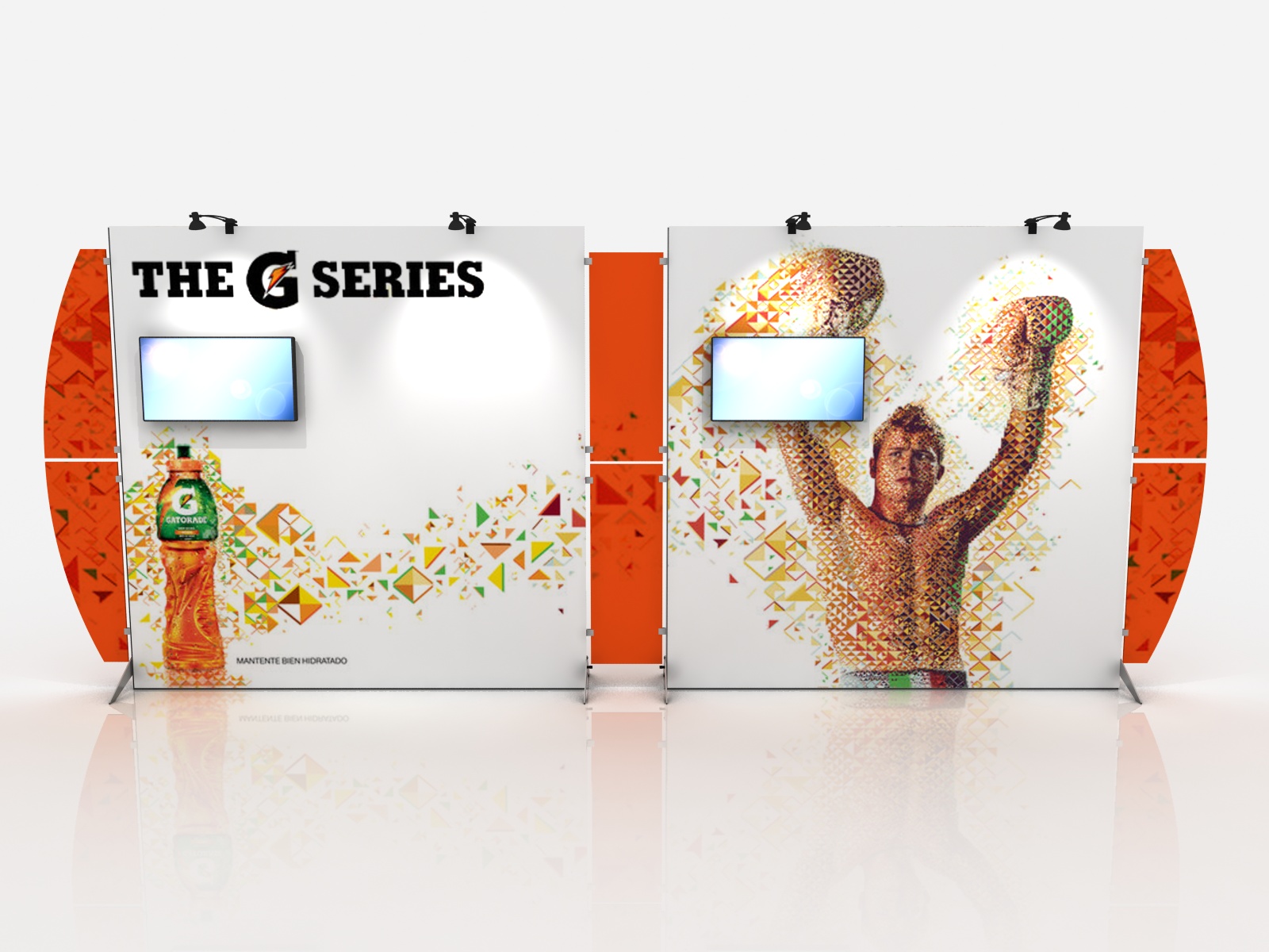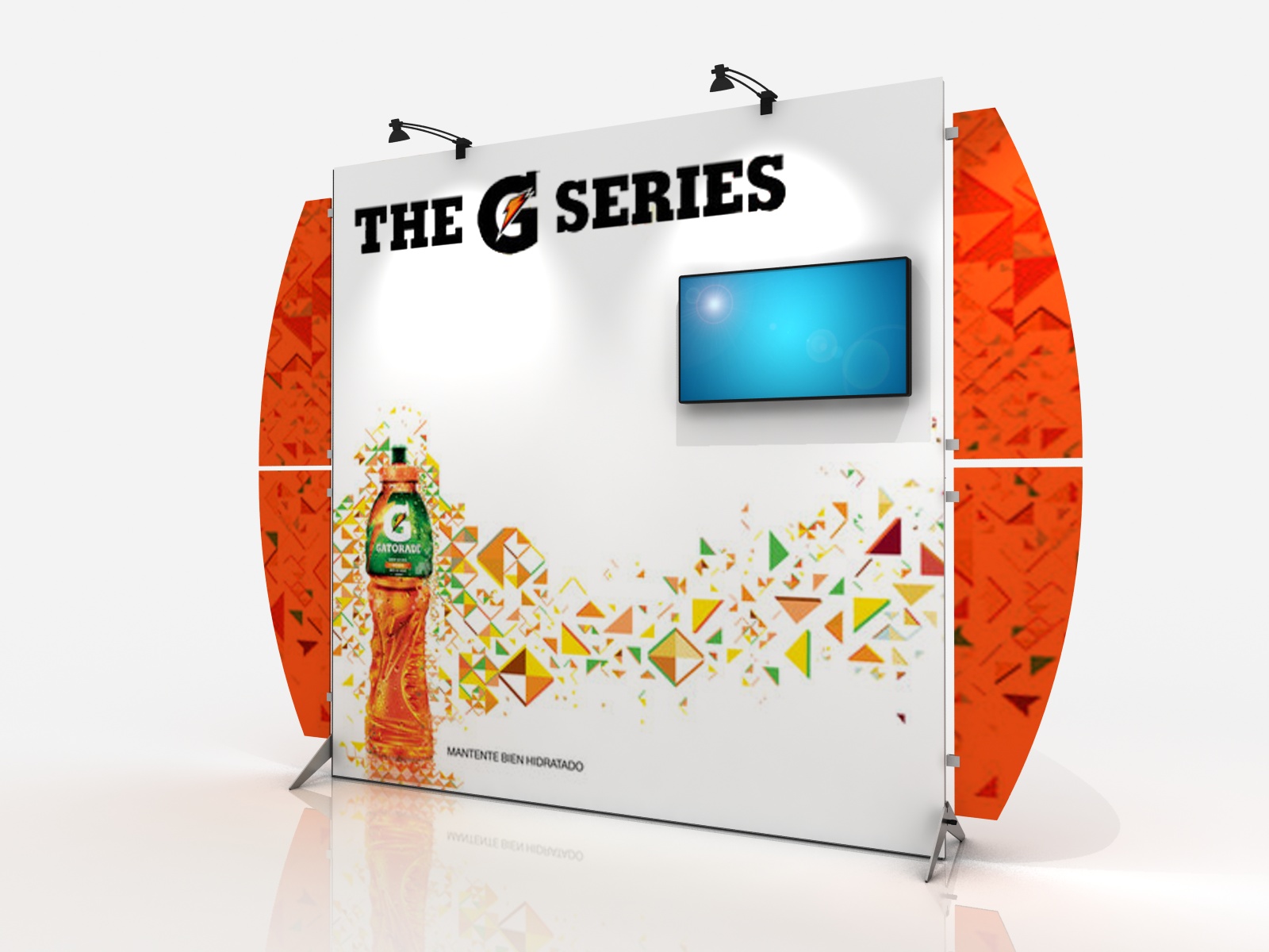 If you are considering a pop up display, then consider the SEGUE Sunrise instead. The Sunrise offers all the advantages of a pop up -- portability, ease of set-up, and a large graphic – with the benefits of a large format tension fabric graphic, aluminum frame, and no-tools assembly. Assembly takes less than 40 minutes for most kits. Best of all, the 7 ½ x 7 ½ silicone edge graphic guarantees a perfect fit every time, and the fabric graphics mean worry-free performance from show to show. You can even wash them.