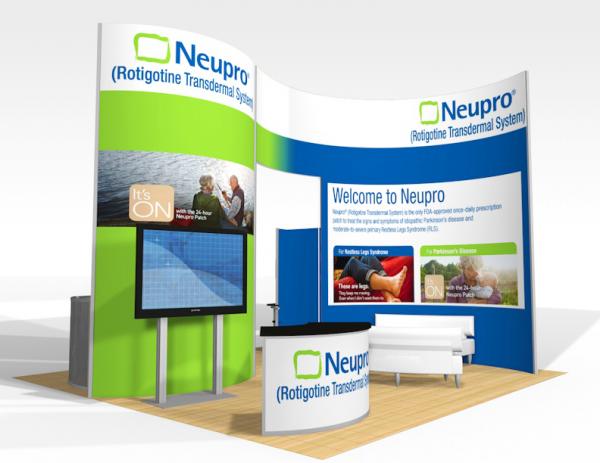 The Rental Island Exhibits go way beyond a pretty picture. We've incorporated key features such as large graphics, private and semi-private conference rooms, towers with locking storage access, and workstations and reception counters with secure storage. Not enough? Then add product shelves, large and small monitors for presentations, a variety of light fixtures, and hanging signs for high visibility from anywhere on the show floor. We also offer three contemporary double-deck configurations.