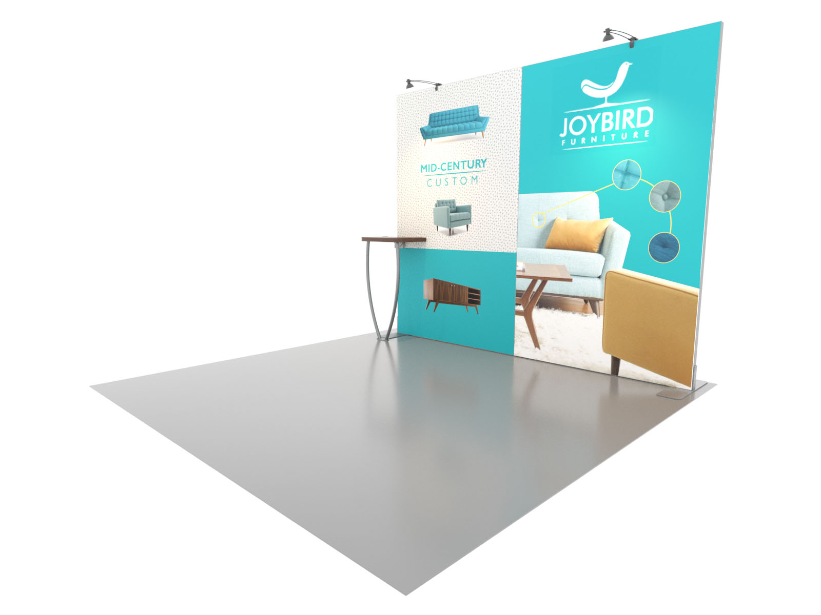 Personalize your Symphony Display with attractive counters, workstations, floating graphics, iPad clamshells, and monitor mounts. The lightweight aluminum frames are engineered for SEG dye-sublimated fabric graphics for a seamless, wrinkle-free look. Add floating graphics for additional visual layering and branding.