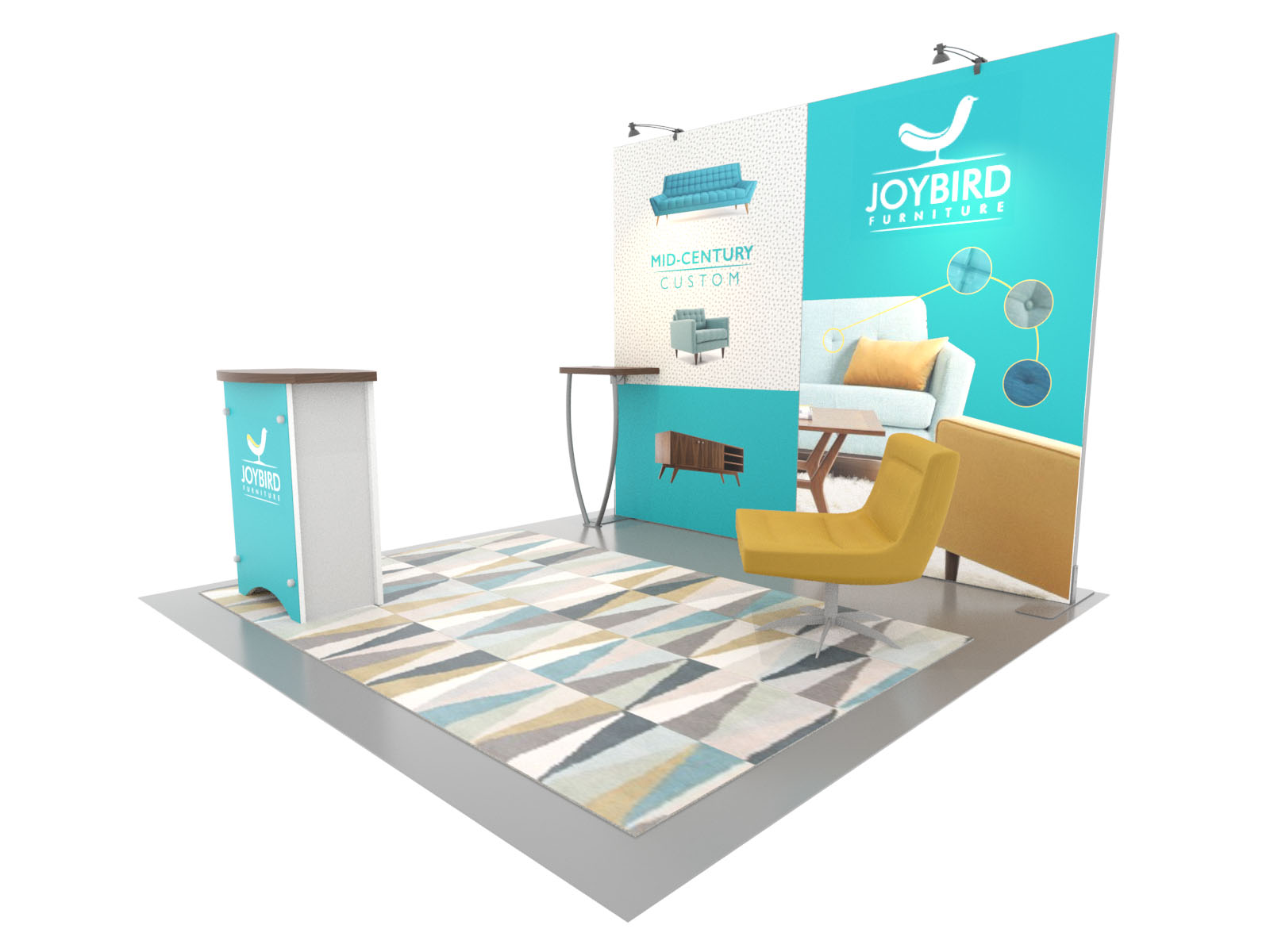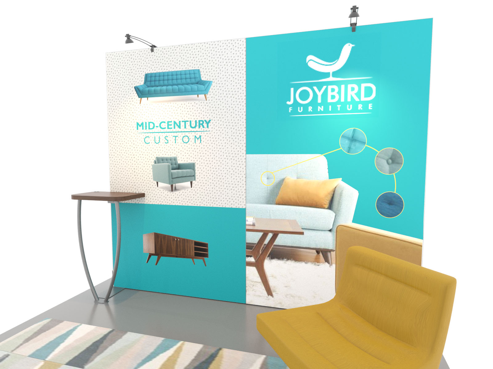 Personalize your Symphony Display with attractive counters, workstations, floating graphics, iPad clamshells, and monitor mounts. The lightweight aluminum frames are engineered for SEG dye-sublimated fabric graphics for a seamless, wrinkle-free look. Add floating graphics for additional visual layering and branding.