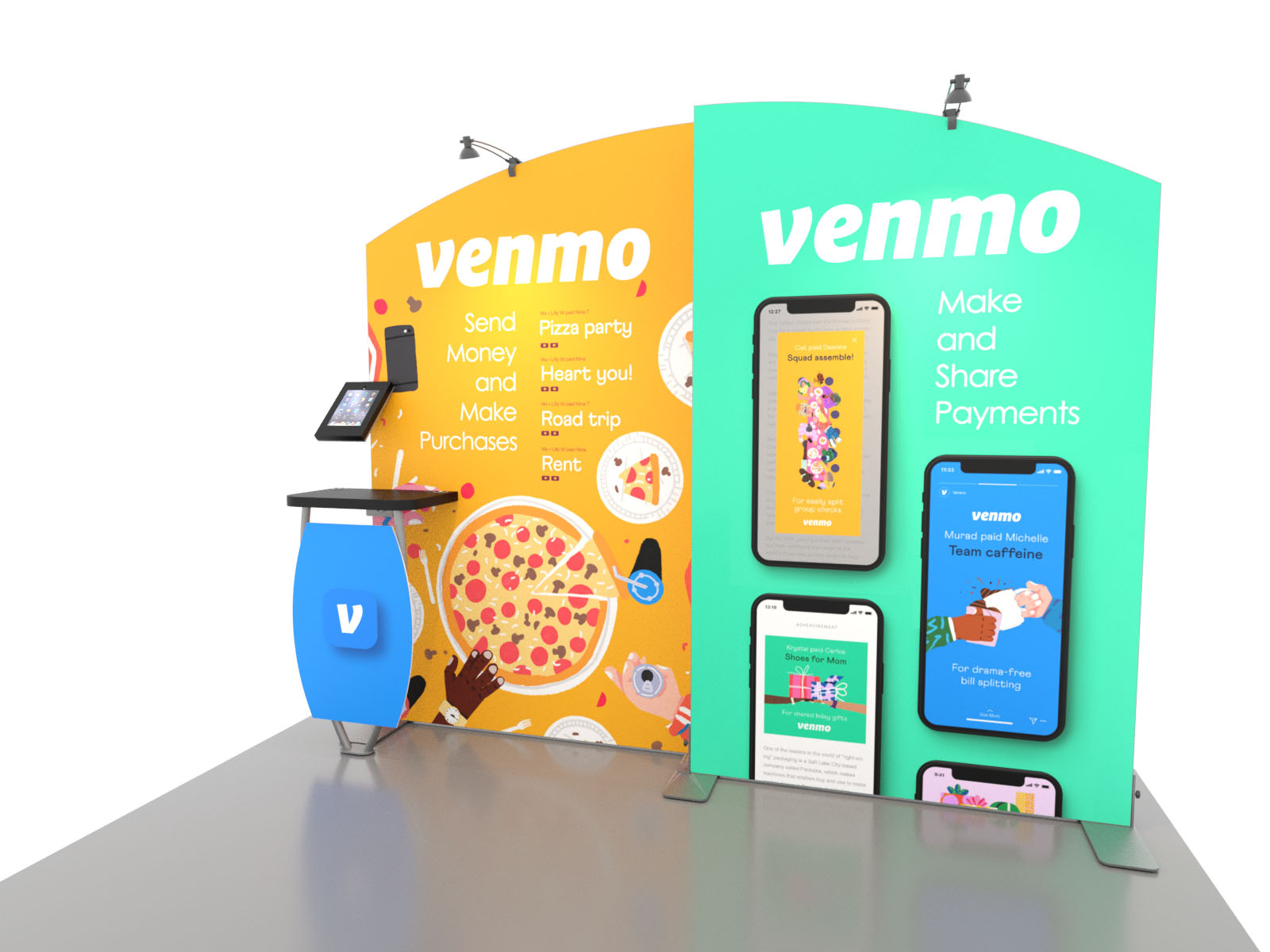 Personalize your Symphony Display with attractive counters, workstations, floating graphics, iPad clamshells, and monitor mounts. The lightweight aluminum frames are engineered for SEG dye-sublimated fabric graphics for a seamless, wrinkle-free look. Add floating graphics for additional visual layering and branding.
