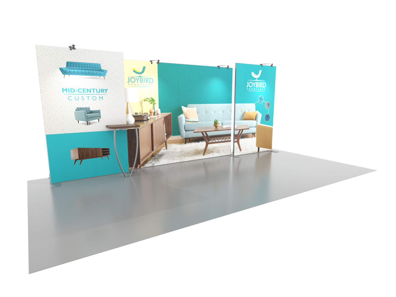 Personalize your Symphony Display with attractive counters, workstations, floating graphics, iPad clamshells, and monitor mounts. The lightweight aluminum frames are engineered for SEG dye-sublimated fabric graphics for a seamless, wrinkle-free look. Add floating graphics for additional visual layering and branding.