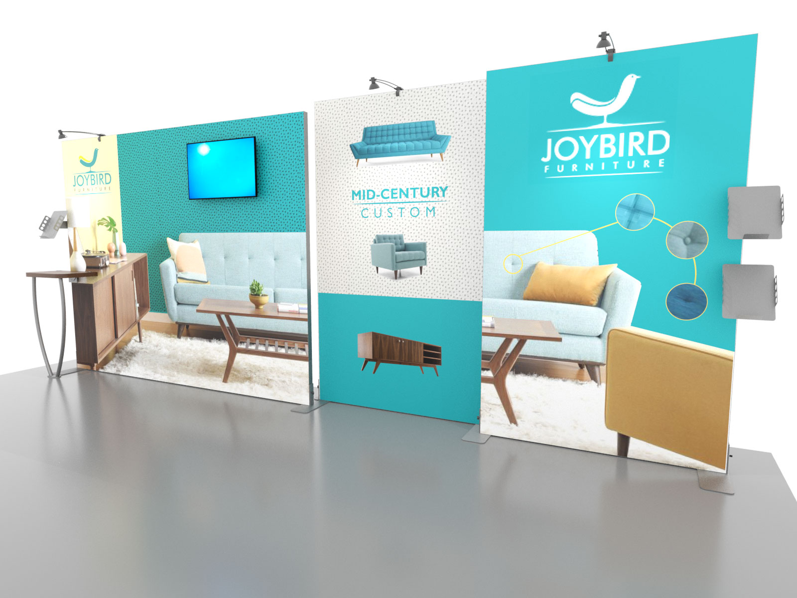 Personalize your Symphony Display with attractive counters, workstations, floating graphics, iPad clamshells, and monitor mounts. The lightweight aluminum frames are engineered for SEG dye-sublimated fabric graphics for a seamless, wrinkle-free look. Add floating graphics for additional visual layering and branding.