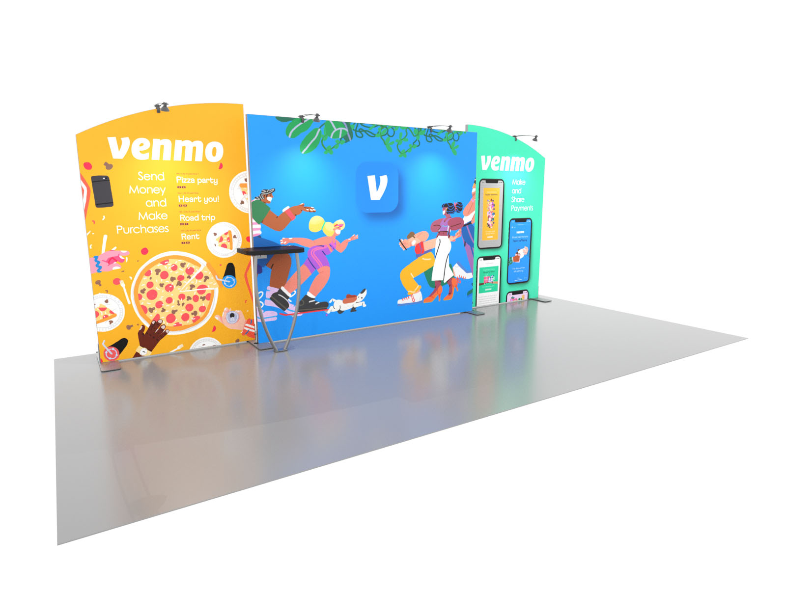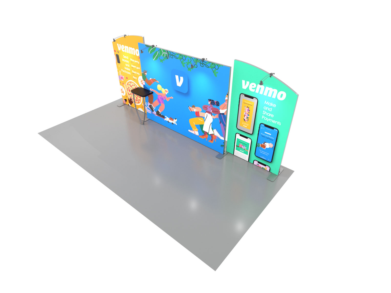 Personalize your Symphony Display with attractive counters, workstations, floating graphics, iPad clamshells, and monitor mounts. The lightweight aluminum frames are engineered for SEG dye-sublimated fabric graphics for a seamless, wrinkle-free look. Add floating graphics for additional visual layering and branding.