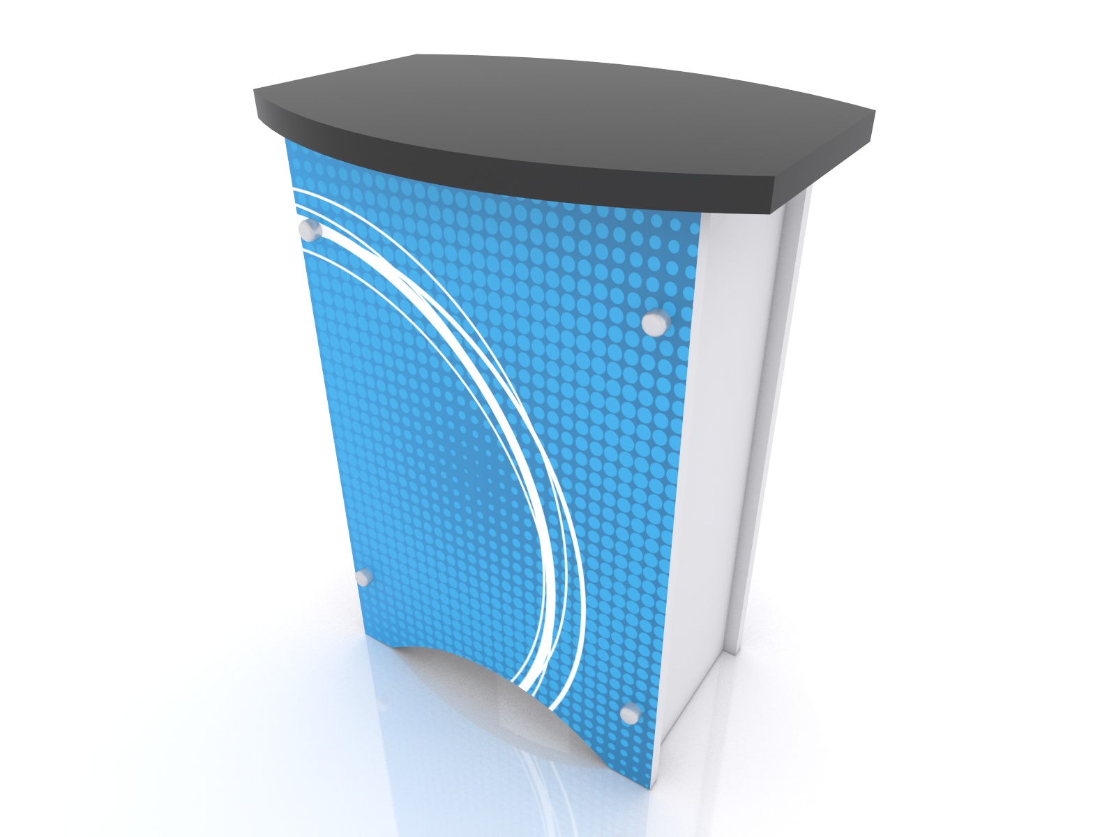 When choosing the right counter or pedestal for your display, consider how you will use it on the show floor. Do you need locking storage? Will the counter or pedestal hold a lead retrieval machine, laptop, or other electrical device? If so, you will need wire management. That may be as simple as ordering a grommet for the counter. If you are planning to use a tablet computer, consider the tablet insert option for the counter top. This option is practical, attractive, and secure for many tablets, such as an iPad.