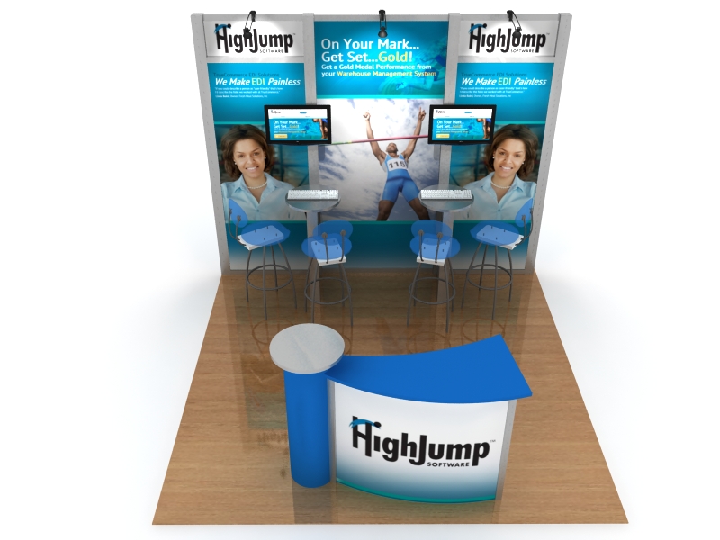 VK-1110 Trade Show Exhibit -- Image 1"But wait . . . there's more!" For once, that cheesy late night pitch has some real value. The VK-5105 starts with an open and flowing island then adds a presentation area, workstations, storage, and an attractive reception counter. It's a great deal at that price . . . But there's even more, the island includes vibrant large format fabric graphics and a walk-in closet. And, if you act now, you'll receive re-configurable options such as a 10 x 10 and 10 x 20 inline. Whether you choose the 10 ft., 20 ft., or island kit, you'll know you made a smart decision for your trade show marketing. Shipping and handling not included. ;-)