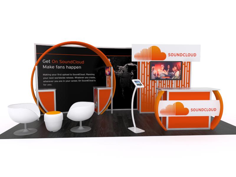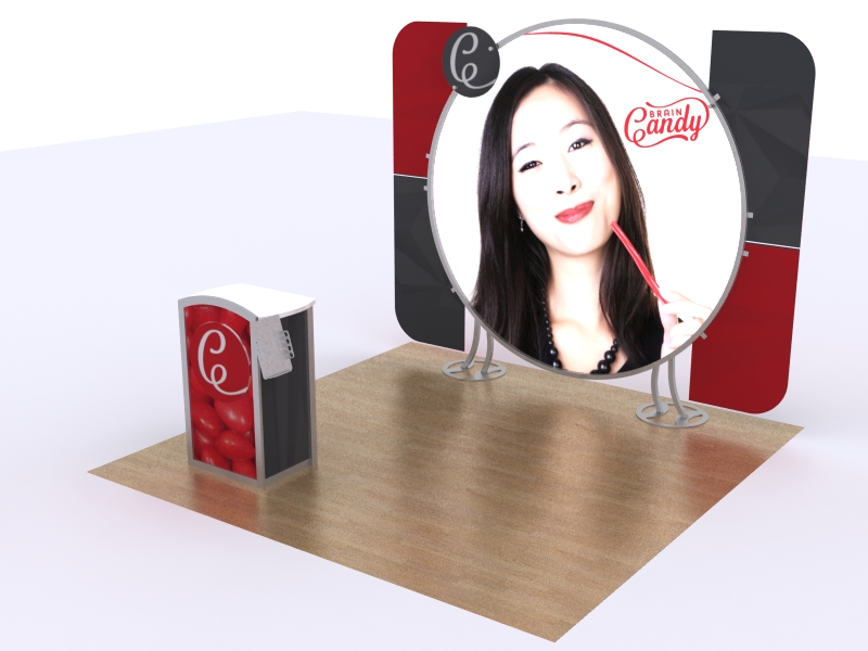 If 50 is the new 30, then circles and curves are the new squares and rectangles. Here's the bottom line: You go to a trade show to be seen, so be seen with an exhibit that elicits "Oohs and Aahs." The VK-1119 and VK-2960 do more than communicate your message with bold tension fabric graphics and colorful accent wings. They have a power and presence to stop an attendee in the aisle. That's what you want from a trade show display. Both reconfigurable 10 ft. and 20 ft. versions come with the MOD1297 counter, which is perfect for welcoming a client into your booth.