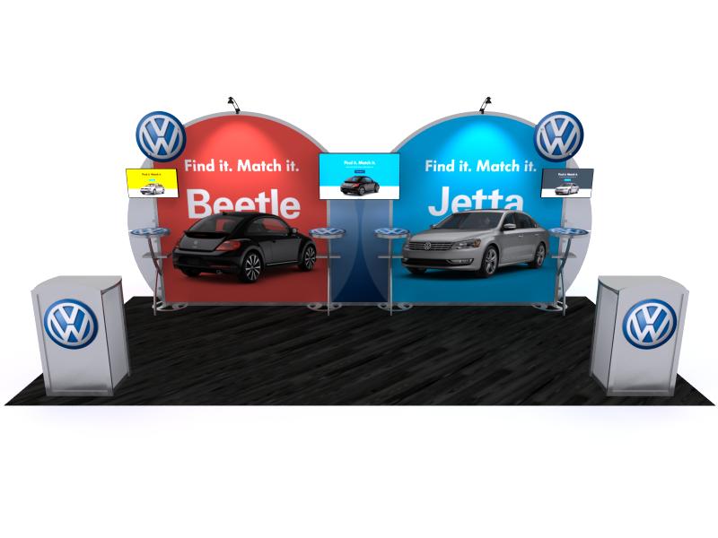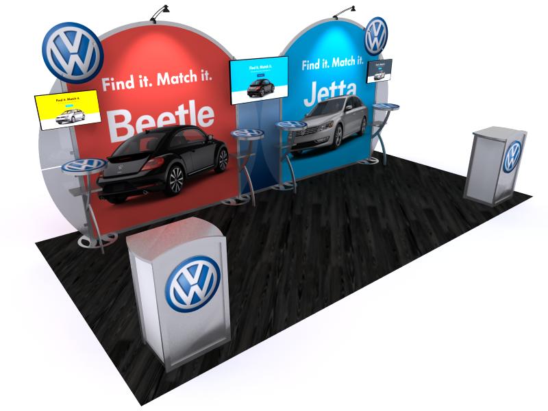 It's simple. You go to a trade show to get noticed and increase sales. So, why would you ever buy a boring display? You shouldn't. The Visionary Designs MEO Series turns portable and affordable into attractive and adaptable. The MEO Hybrid is a contemporary display designed with lightweight engineered aluminum and vibrant tension fabric graphics. Using knob-assisted assembly, the MEO sets-up quickly, typically in less than 40 minutes for a 10 ft. display. All components are individually numbered and pack in durable roto-molded cases with custom die-cut foam packaging. Options include workstations, pedestals, headers, iPad accessories, and monitors.