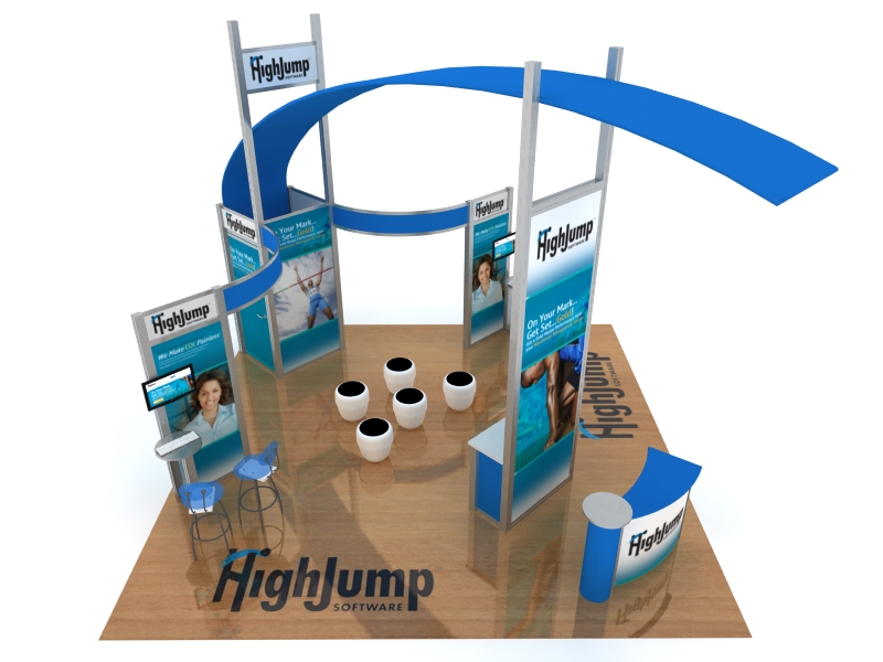 "But wait . . . there's more!" For once, that cheesy late night pitch has some real value. The VK-5105 starts with an open and flowing island then adds a presentation area, workstations, storage, and an attractive reception counter. It's a great deal at that price . . . But there's even more, the island includes vibrant large format fabric graphics and a walk-in closet. And, if you act now, you'll receive re-configurable options such as a 10 x 10 and 10 x 20 inline. Whether you choose the 10 ft., 20 ft., or island kit, you'll know you made a smart decision for your trade show marketing. Shipping and handling not included. ;-)
