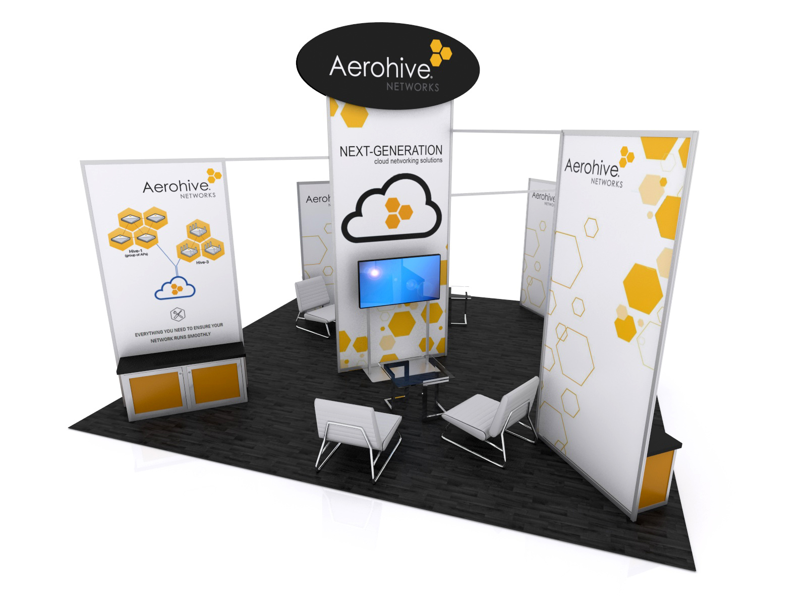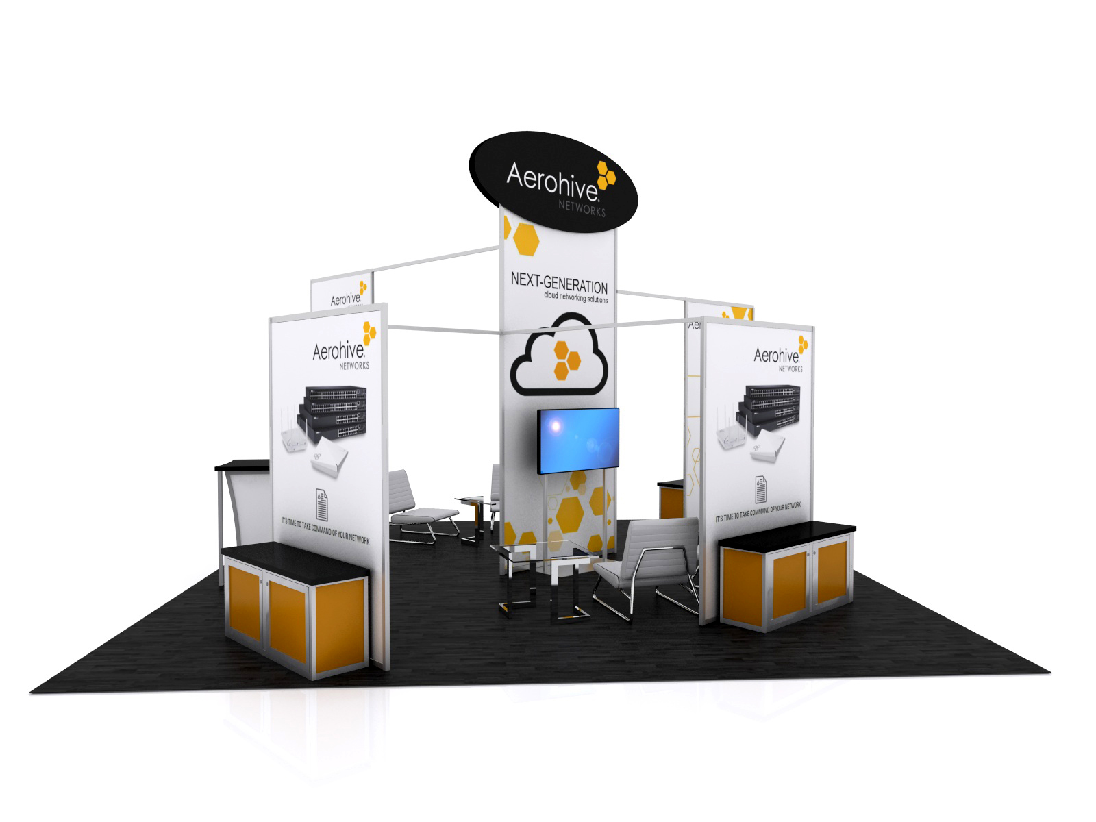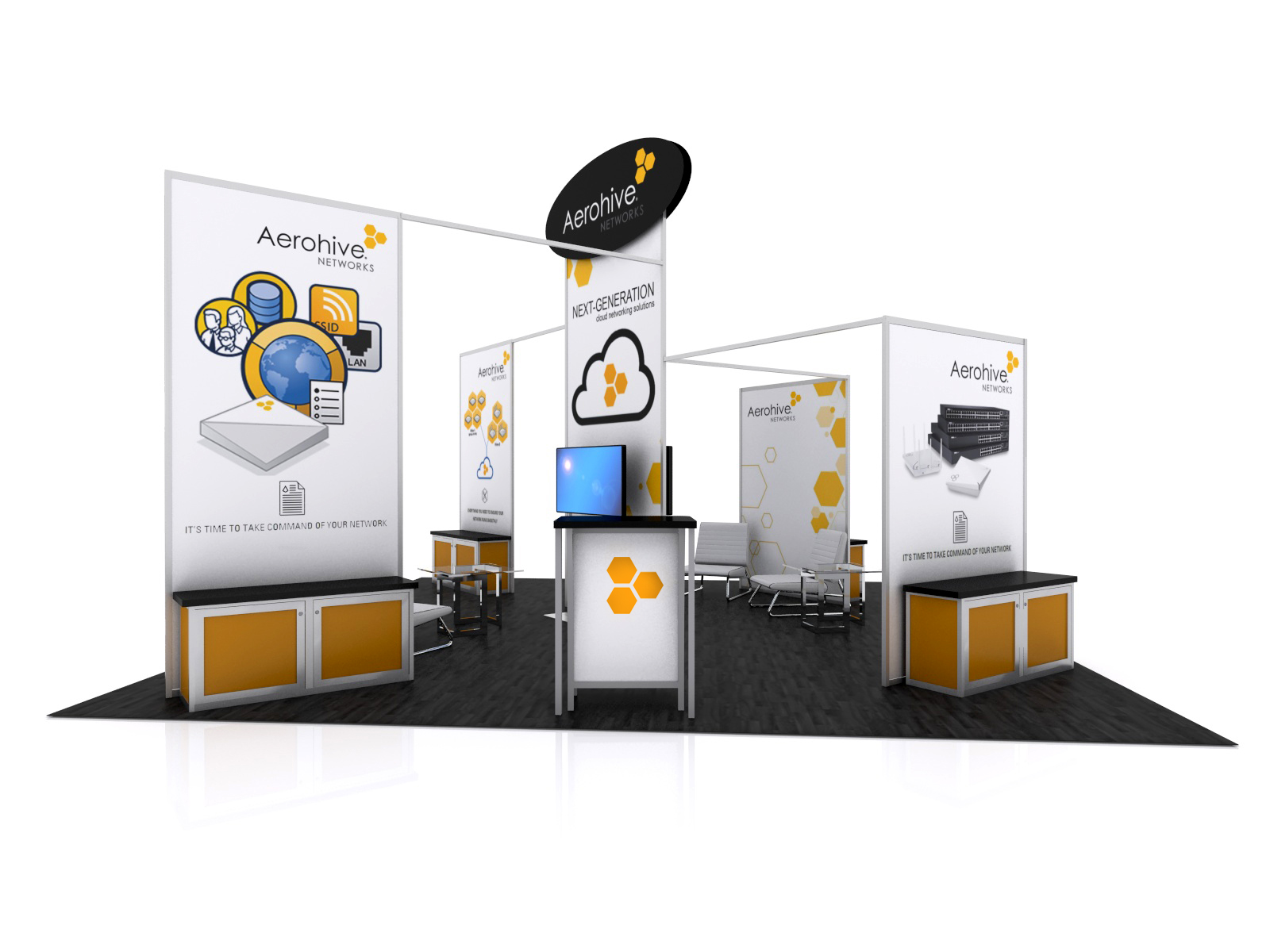 Island exhibits are displays bordering 3-4 aisles, with the smallest starting at 20’ x 20’. Inline exhibits, by contrast, typically border 1 or 2 aisles and are usually 10’ x 10’ or 10’ x 20’.